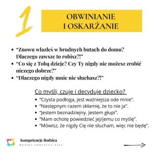 Na początku rodzic prosi… miło… z empatią…, ale kiedy dzieci nie słuchają lub mówią NIE, rodzice często przybierają metody, które niekoniecznie są skuteczne i często wywołują konflikty… Ponadto, zaniżają w dzieciach poczucie własnej wartości.