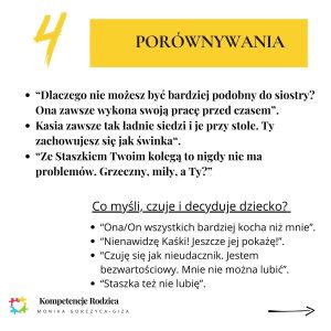 Wiem, że trudno się to czyta, słucha… Nie przejdziemy jednak drogi, kiedy nie uświadomimy sobie, czego lepiej nie robić. Dlatego dziś zachęcam, spójrzcie w post – grafikę, jakich słów lepiej unikać.